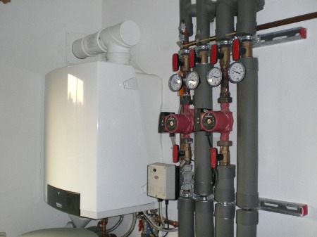 Hier sehen Sie eine Anlage der Firma Buderus die von uns gebaut wurde. Es handelt sich hierbei um eine Gas-Brennwertanlage Typ GB 142. Diese Anlage beheizt ein Einfamilienhaus, mit 2 Heizkreisen sowohl Heizkörper als auch Fußbodenheizung.